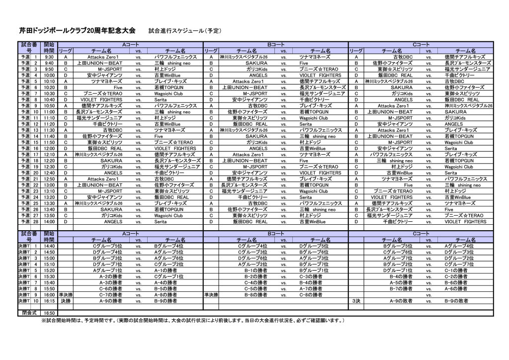 皆様、本日は芹田ドッジボールクラブ20周年記念大会にご参加頂き本当にありがとうございます。